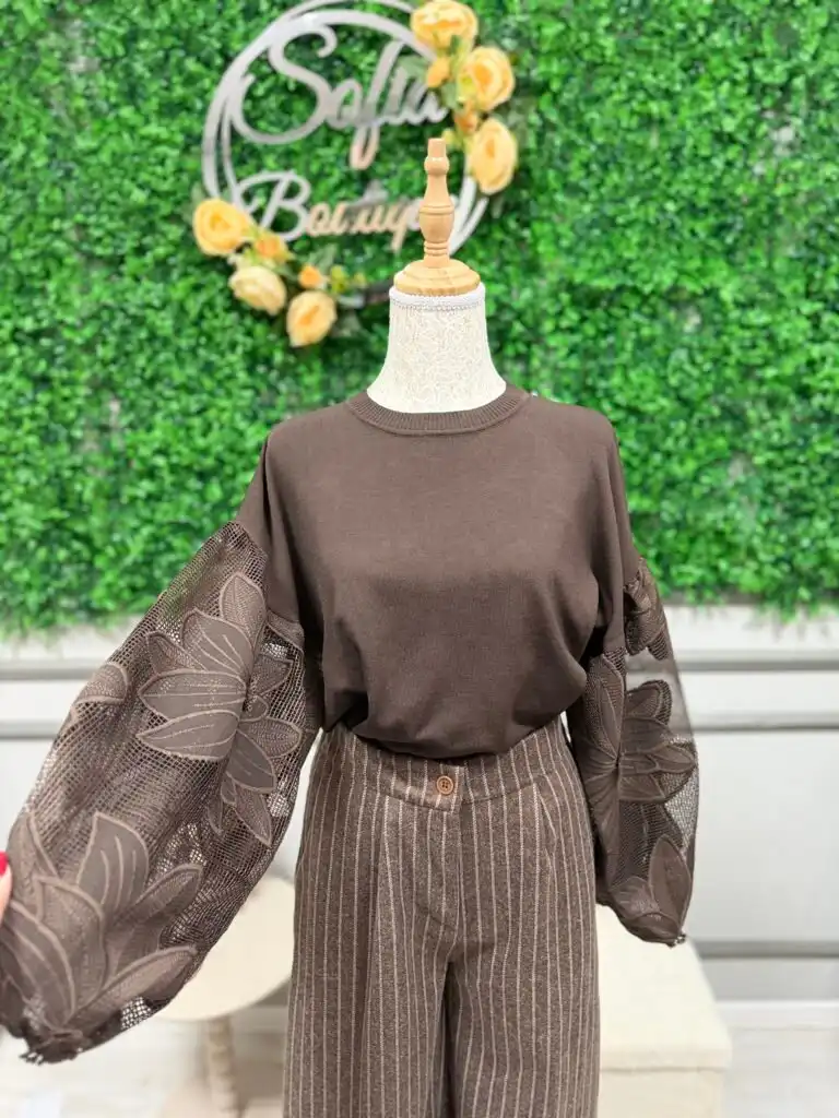 Блуза от нежно и фино плетиво с красив широк ръкав.