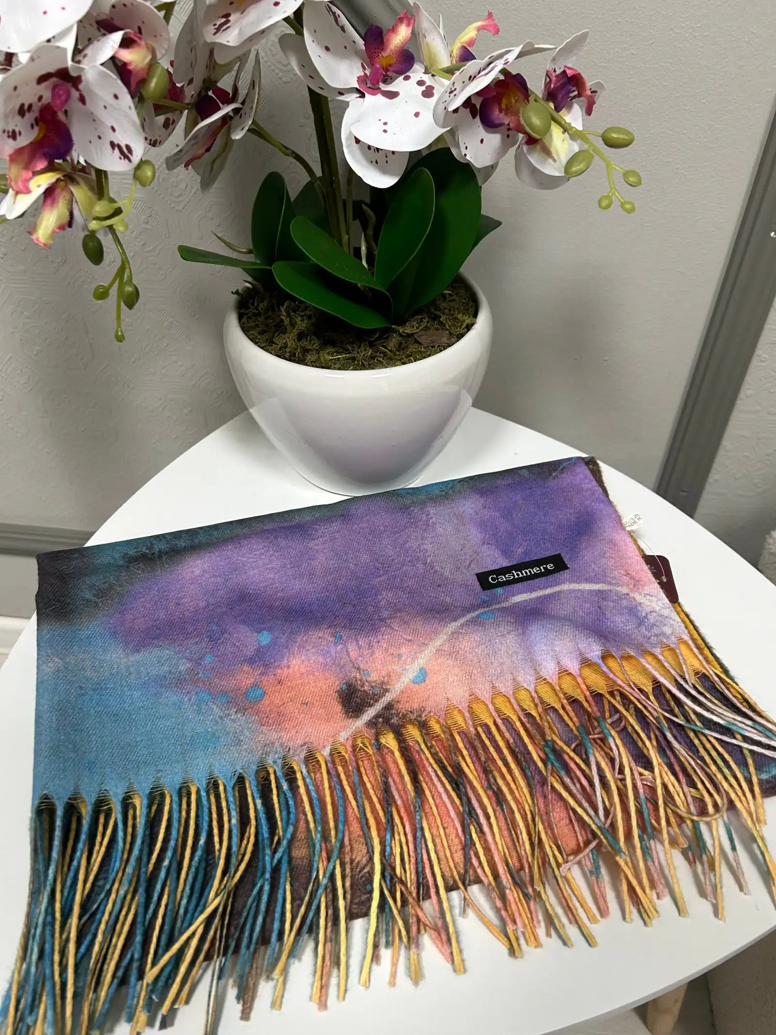 Голям двулицев кашмирен шал с ресни.