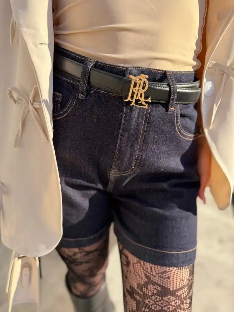 Къси дънкови панталонки с висока талия и леко разкроен силует, изработени от еластичен деним в тъмносин нюанс. Моделът е с класическо закопчаване отпред, контрастни шевове и практични джобове, което ги прави лесни за комбиниране както с ежедневни тениски, така и с по-елегантни топове.