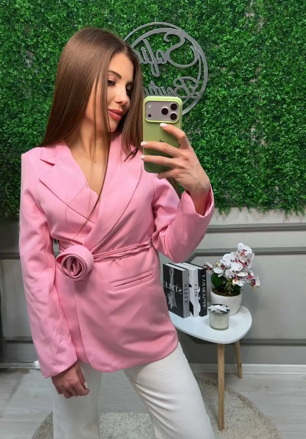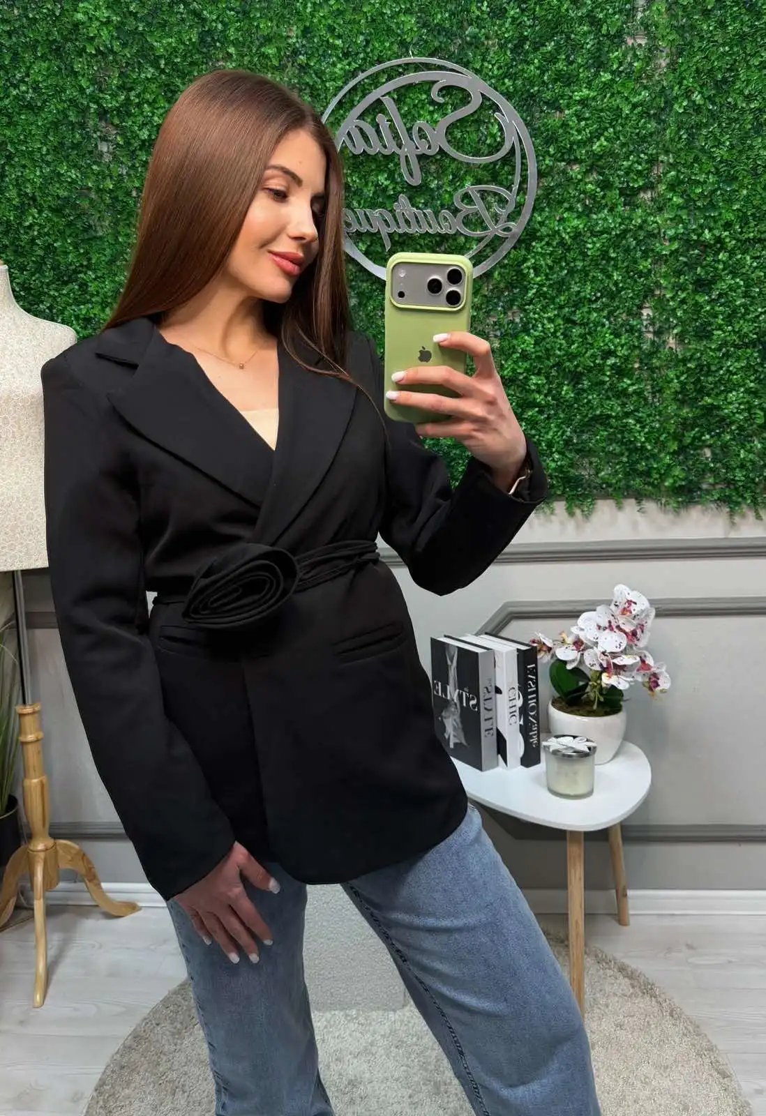 Сако “La Rose” впечатлява с елегантна линия и изискан детайл – роза, която подчертава талията и придава усещане за haute couture.
